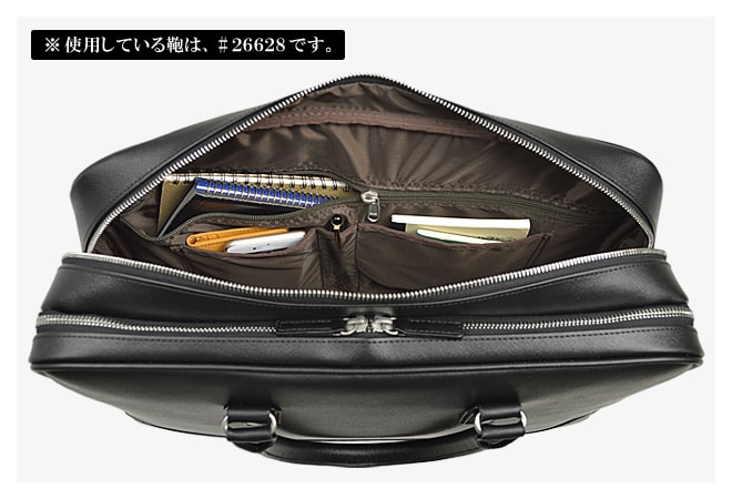 【 #26628 だけの仕様 】 B4ファイルが収納できるサブルームを装備 書類を仕分けての収納や、1泊出張時の着替えなどもOK! 【 サブルーム内部:吊りベルト付きアテポケット 】 ペンや手帳、メモ帳など細々としてサッと取り出したい小物を整理、収納することができます。