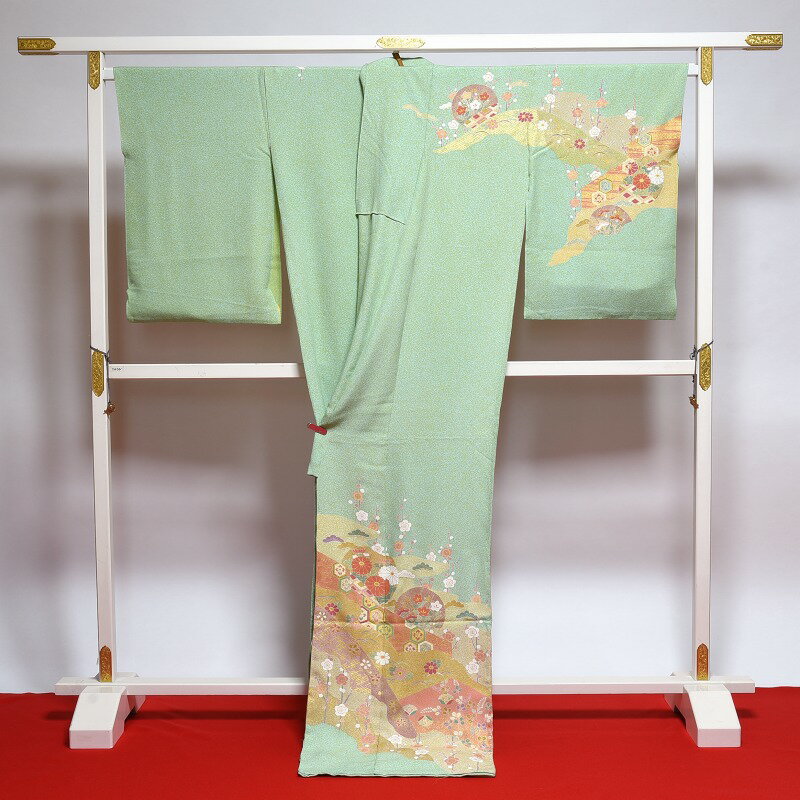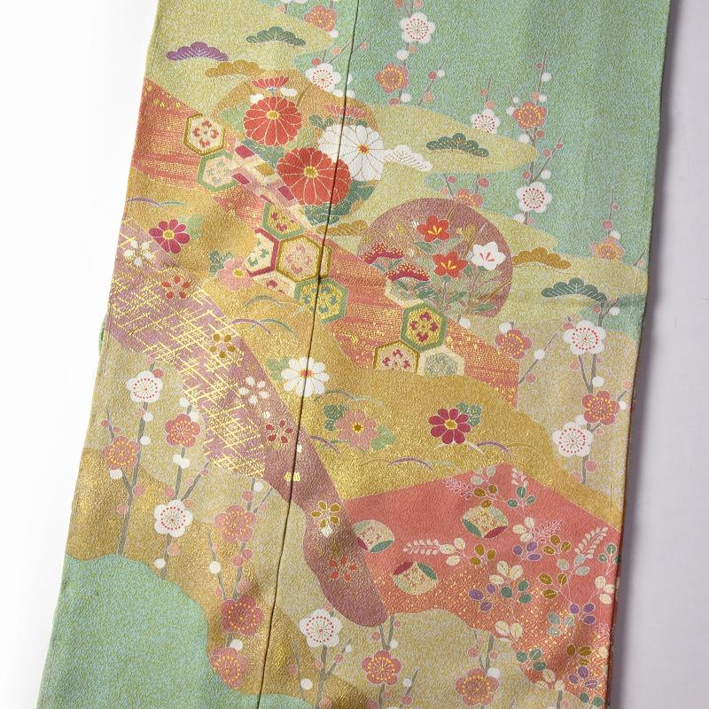 京友禅作家 松井青々 道長取りに四季花々 若葉系色 【裄70cm位まで】結婚式・披露宴・パーティ・お見合い・結納・入卒式・宮参り・七五三に♪